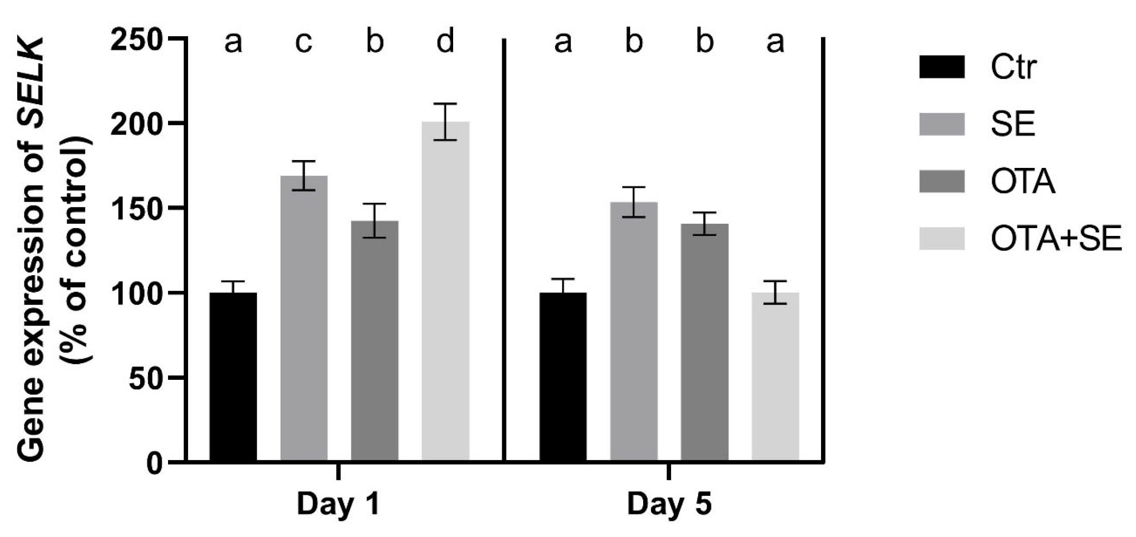 SELK | ↑ (moderate) | ↑ | ↑ | ↑ | ↑ | — (no difference from Ctrl) |