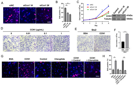 - Du, H.; Zhou, Y.; Suo, Y.; Liang, X.; Chai, B.; Duan, R.; Huang, X.; Li, Q. CCN1 accelerates re-epithelialization by promoting keratinocyte migration and proliferation during cutaneous wound healing. Biochem. Biophys. Res. Commun. 2018, 505, 966–972. [Google Scholar] [CrossRef]