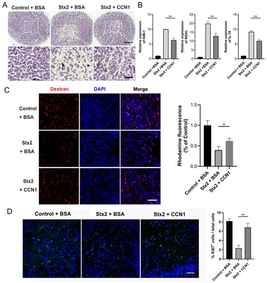 2.3. Macula Densa-Derived Niche Factor CCN1 Promotes the Proliferation and Regeneration of Stx-Injured RTECs