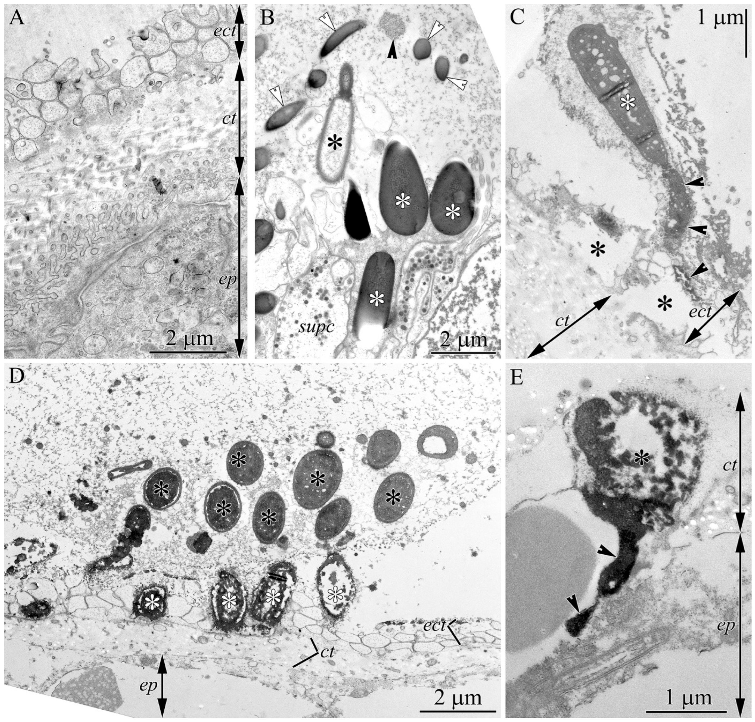 - Montalvo, S.; Roldán, C.; Junoy, J.; García-Corrales, P. Ultrastructural study of two glandular systems in the proboscidial glandular epithelium of Riseriellus occultus (Nemertea, Heteronemertea). Zoomorphology 1998, 117, 247–257. [Google Scholar] [CrossRef]