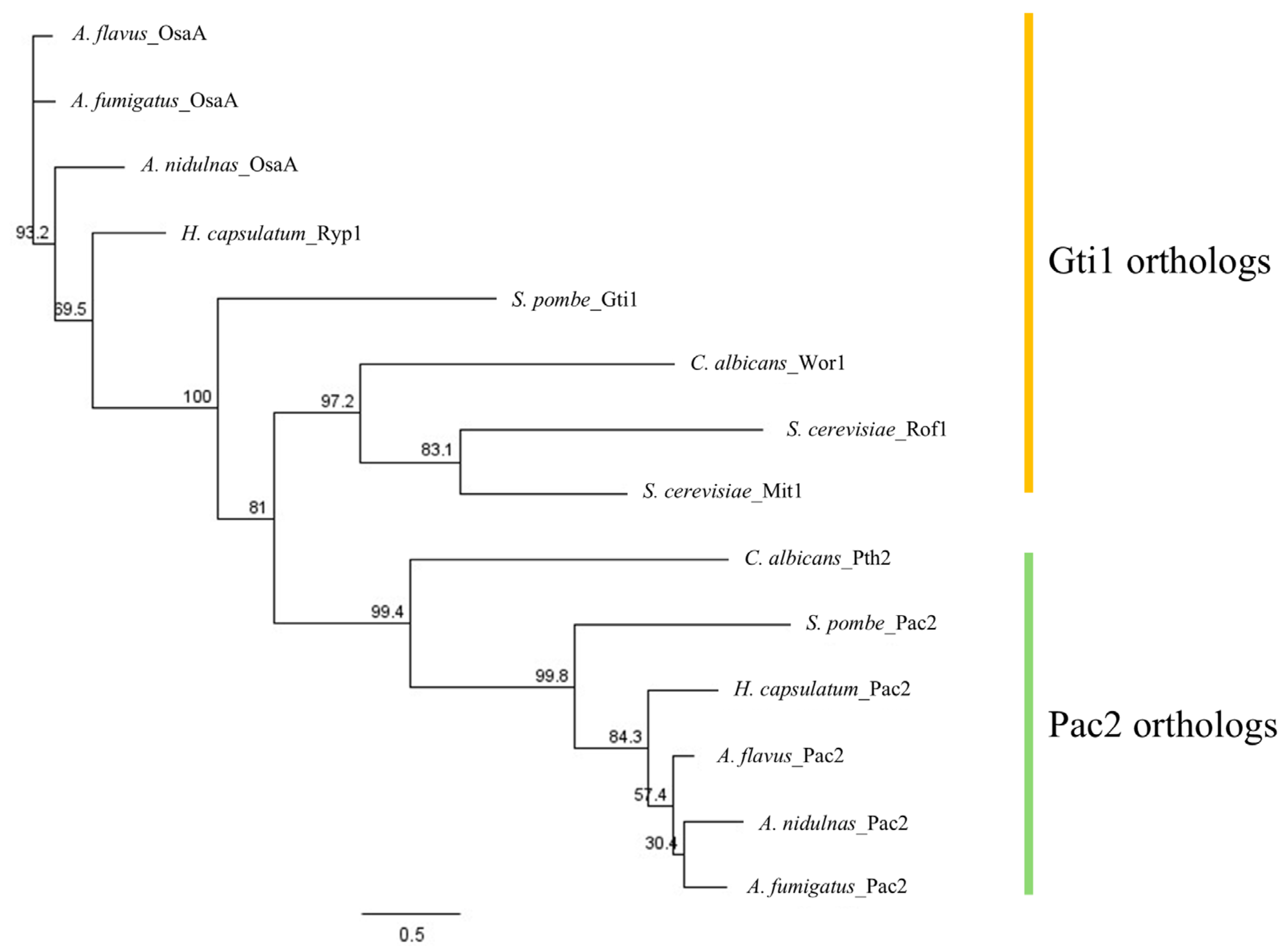 | A. nidulans | AN3074 | XP_660678.1 | Putative Pac2 |