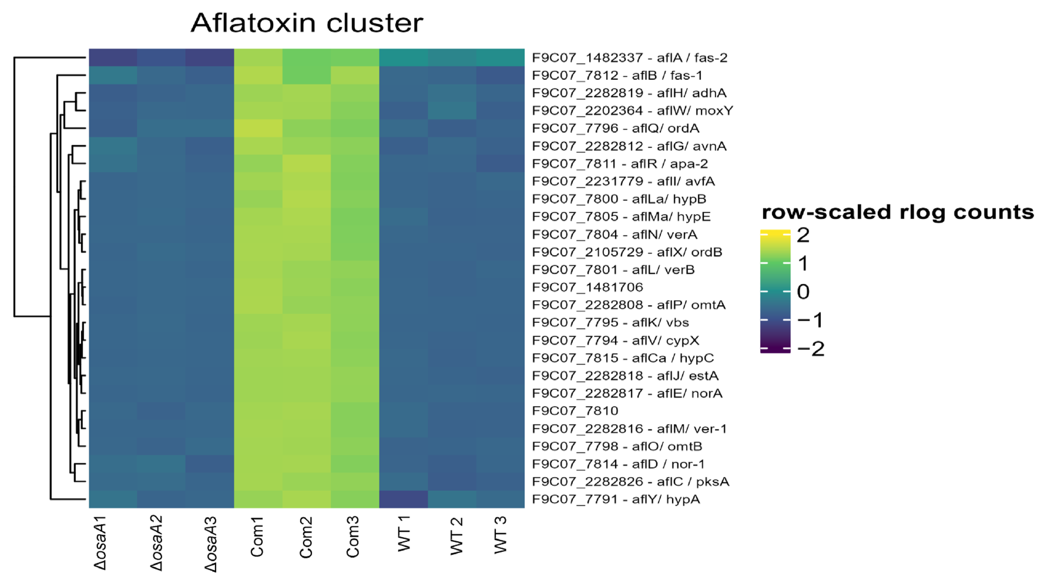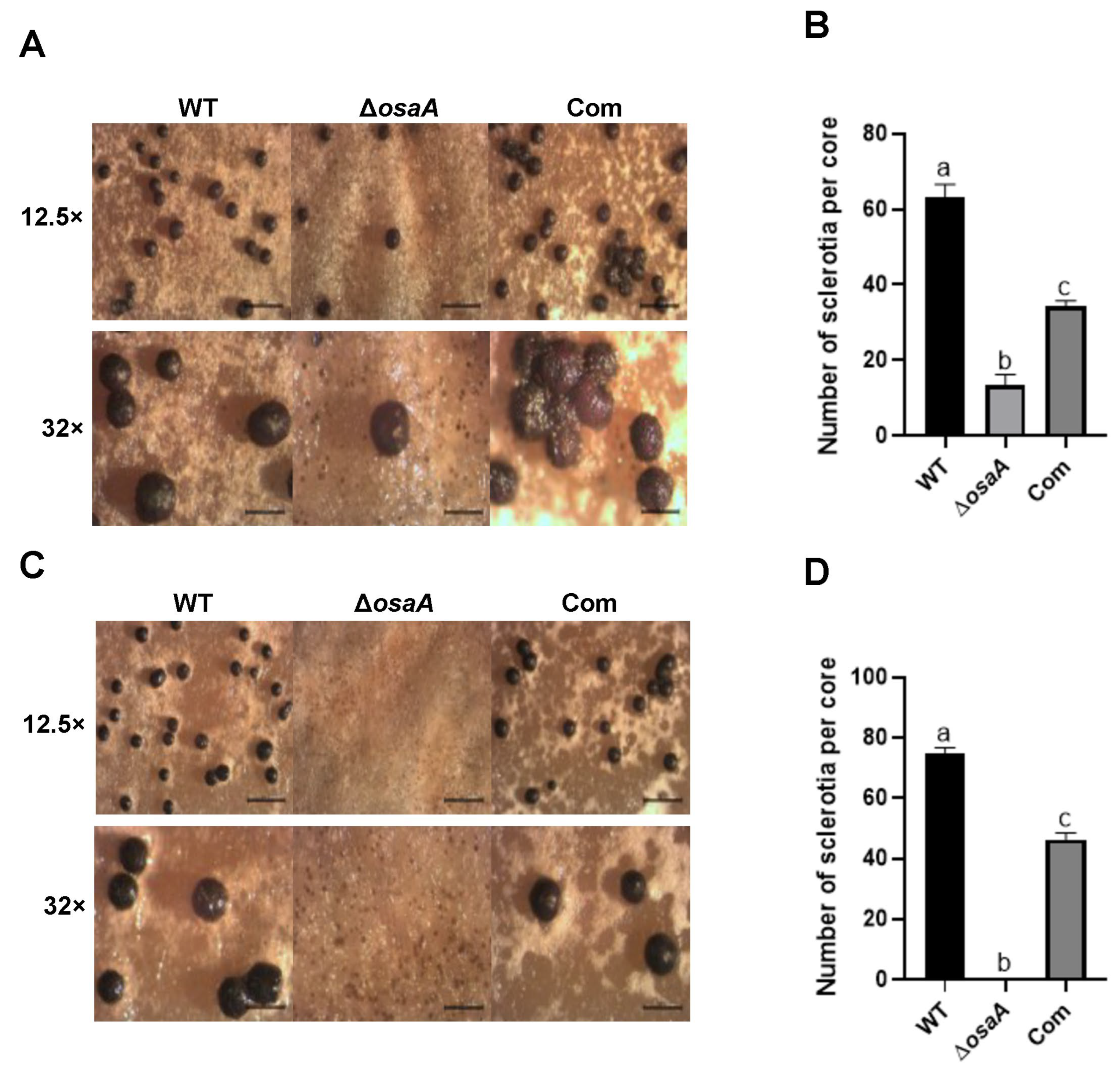2.2. osaA Regulates Development in A. flavus