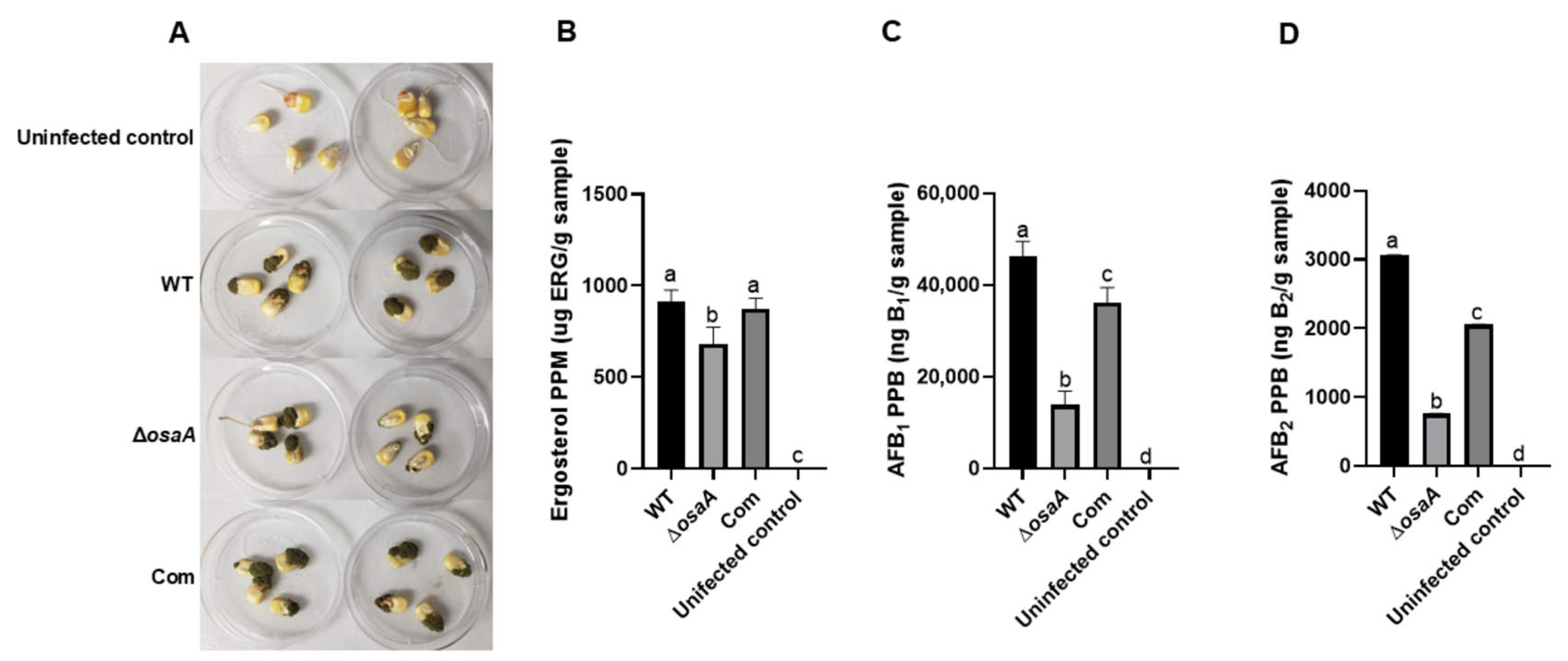 2.6. osaA Is Indispensable for A. flavus Seed Infection