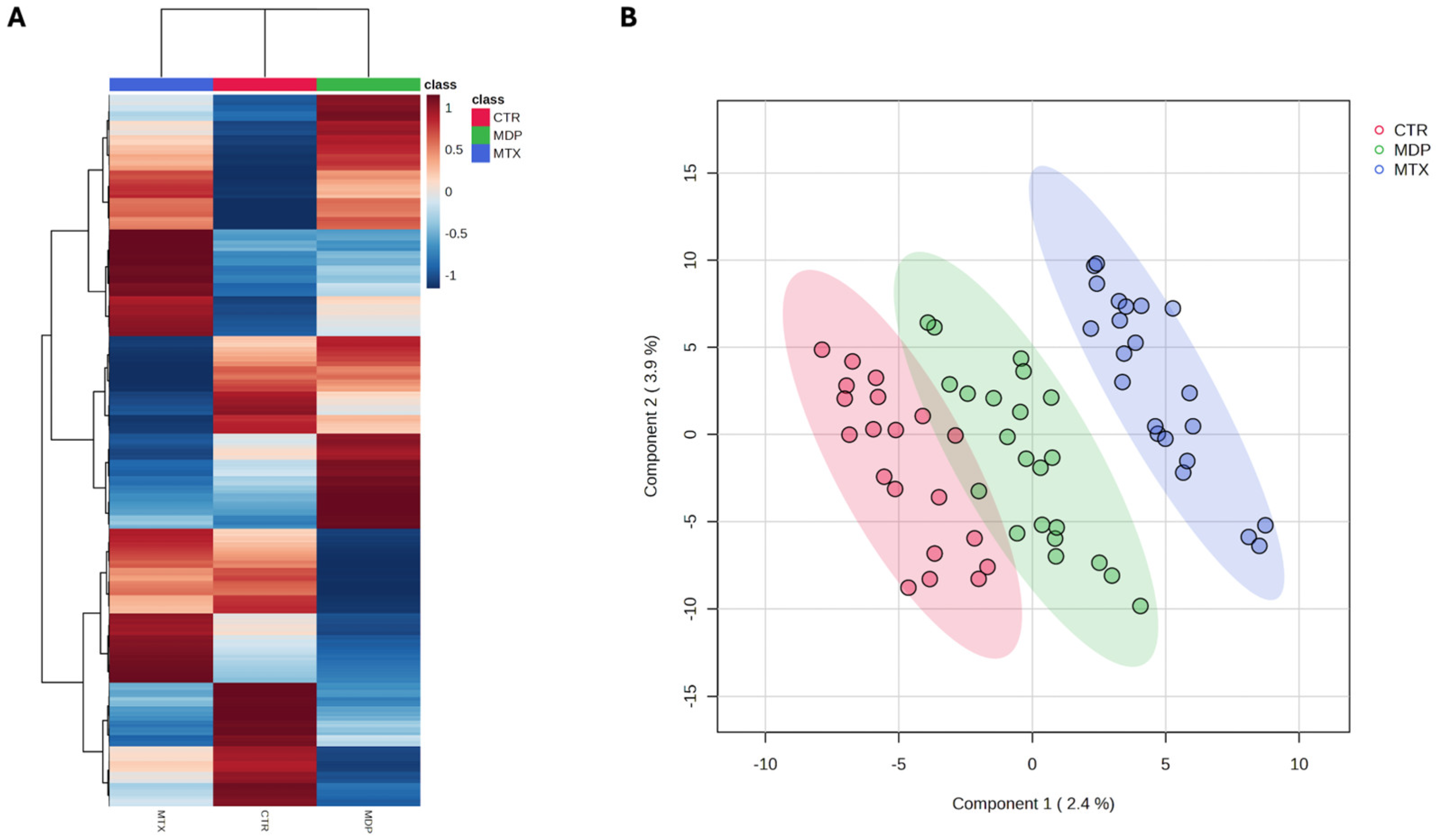 3.3. Exploratory Metabolomic Differences Between MDP and CTR Groups