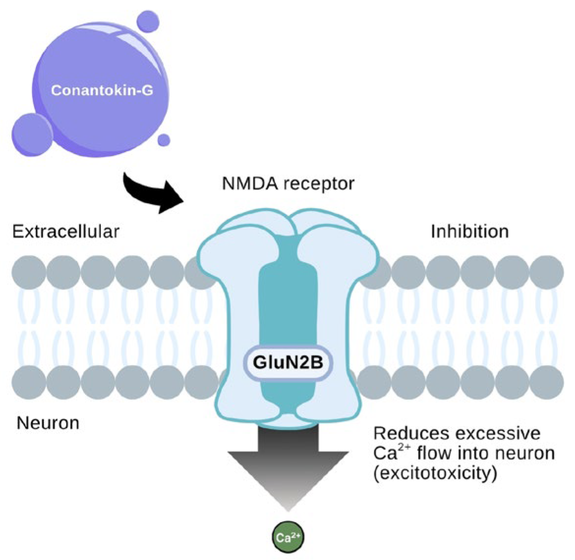 - Balsara, R.; Dang, A.; Donahue, D.L.; Snow, T.; Castellino, F.J. Conantokin-G attenuates detrimental effects of NMDAR hyperactivity in an ischemic rat model of stroke. PLoS ONE 2015, 10, 0122840. [Google Scholar] [CrossRef]