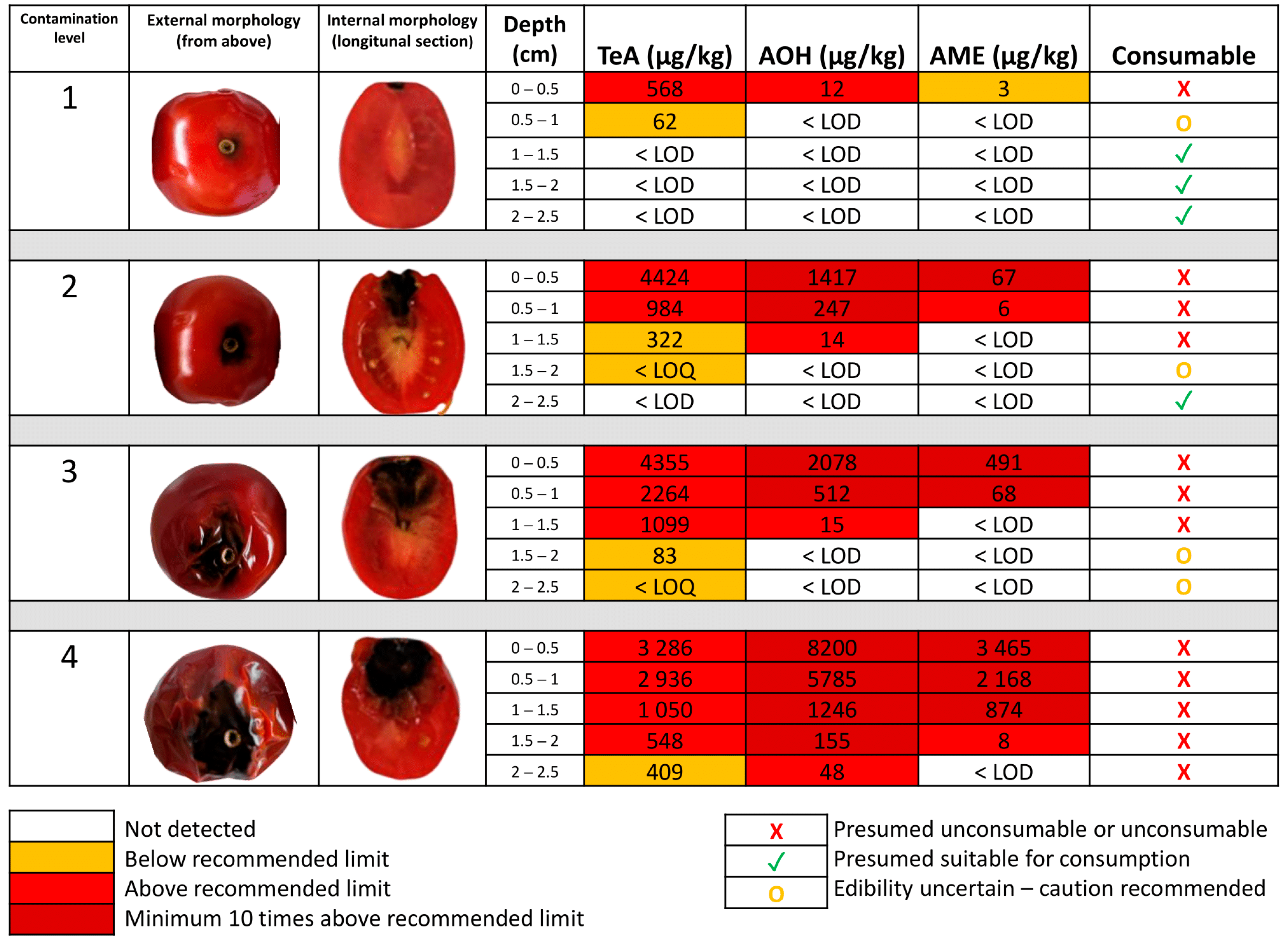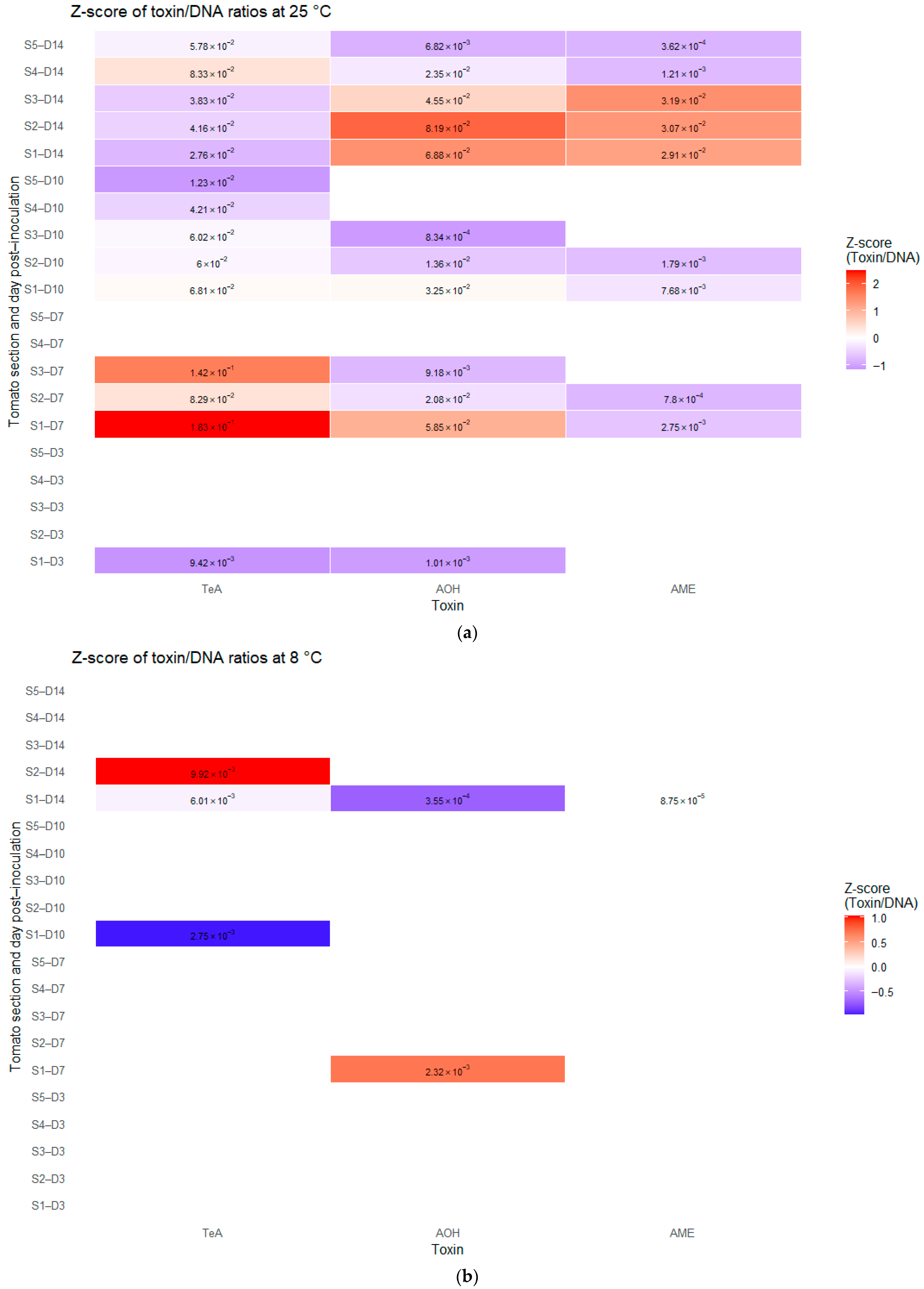 2.6. Diffusion of Toxins in Tomato Sections After Artificial Toxin Contamination