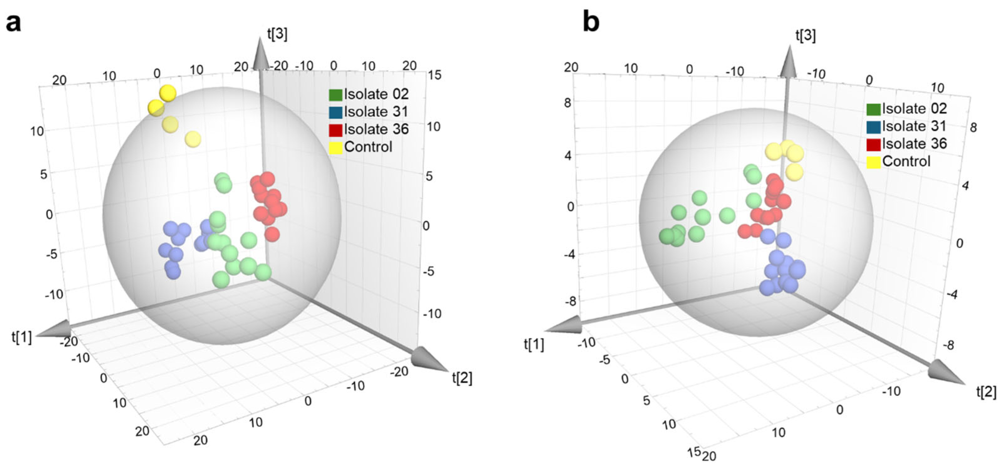 24]. In the present study, supervised PLS-DA modelling enabled the discrimination of strain-specific metabolic profiles, indicating differences in the metabolic responses elicited by distinct isolates.