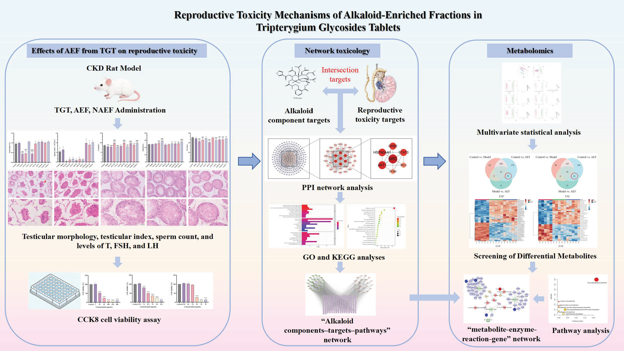 Chicago/Turabian StyleHan, Caiyao, Hong Yuan, Sixian Chen, Zhuohua Huang, He Gong, Lin Lv, Xinpeng Zhou, Jiang Ma, and Xin He. 2026. "Integrated Network Toxicology and Metabolomics Reveal the Reproductive Toxicity Mechanisms of Alkaloid-Enriched Fractions in Tripterygium Glycosides Tablets" Toxins 18, no. 4: 175. https://doi.org/10.3390/toxins18040175
