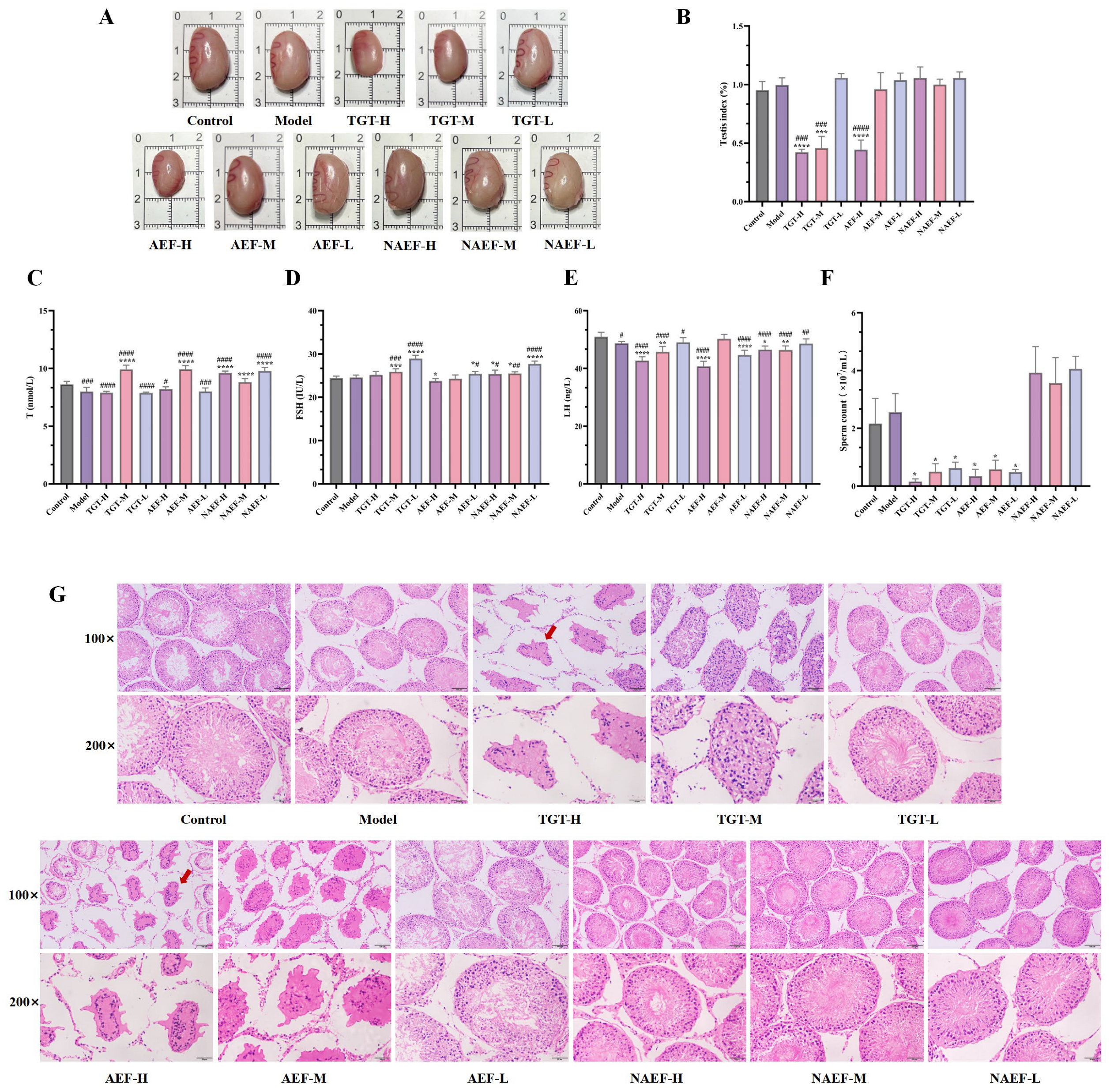 2.1. Effects of the AEF of TGT on Reproductive Toxicity in Rats