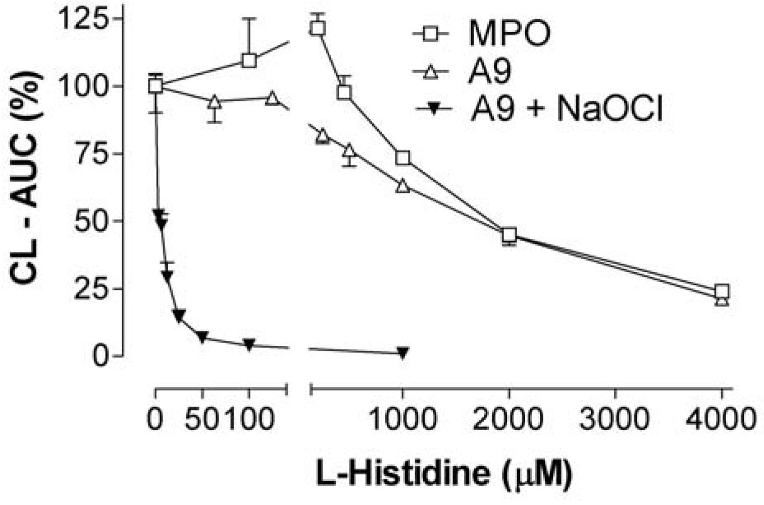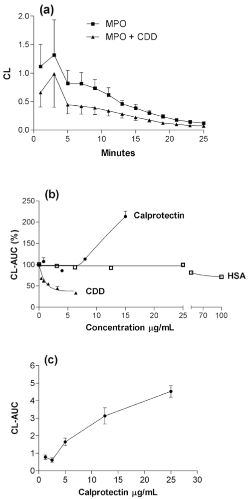 2.3. CL responses of calprotectin and MPO to H2O2, azide, NaCl, melatonin, and cysteine supplements to the reaction mixtures