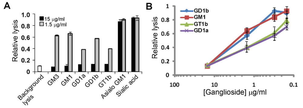 3.2. Gangliosides Block LtxA-Mediated Hemolysis