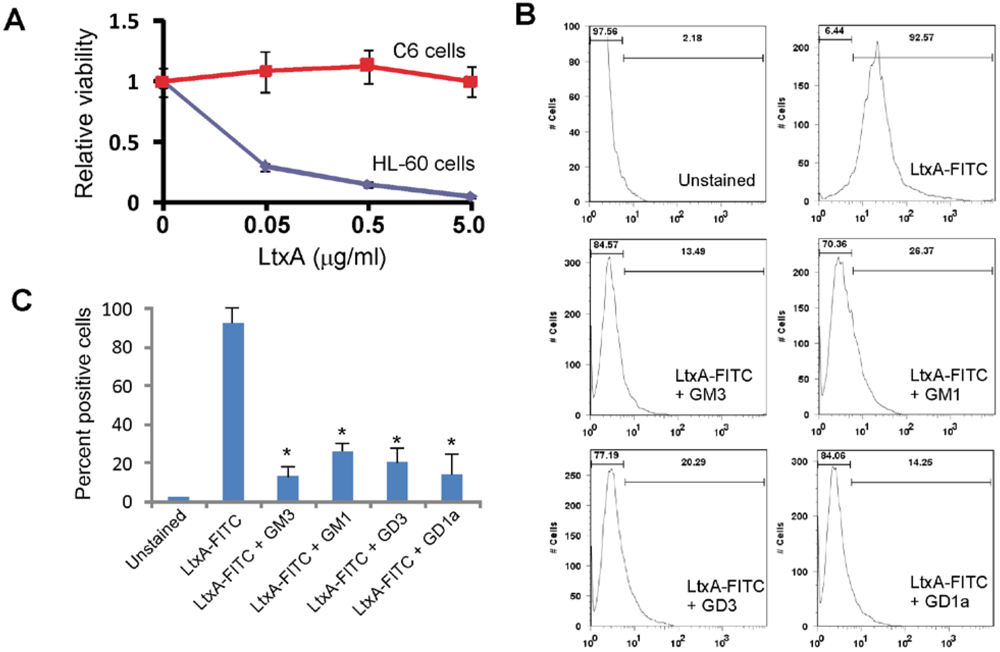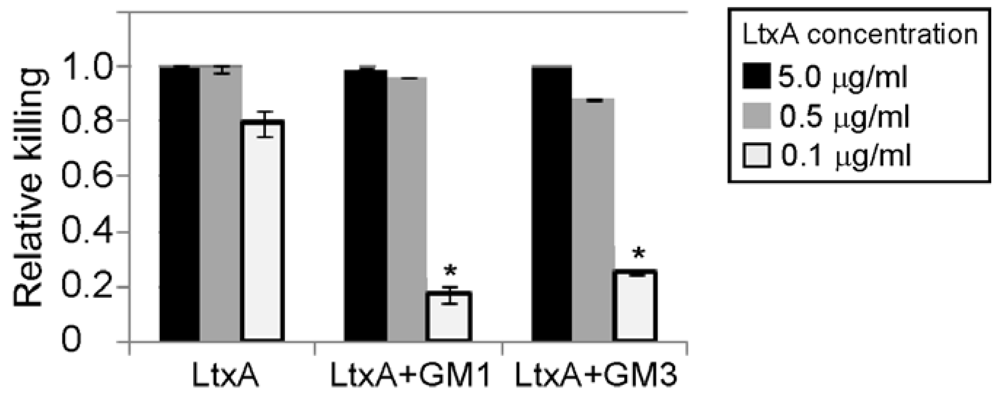 3.4. Gangliosides Inefficiently Block LtxA-Mediated Killing of WBCs