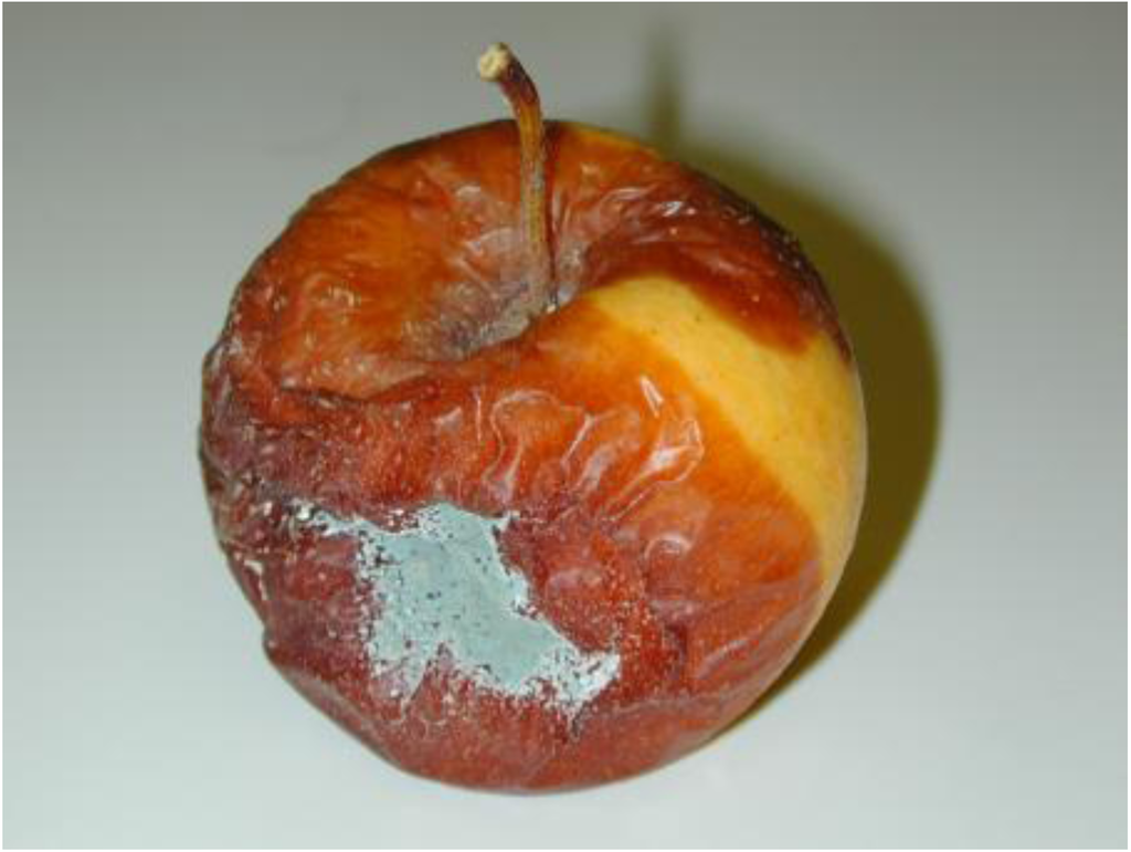 An apple contaminated by Penicillium expansum.