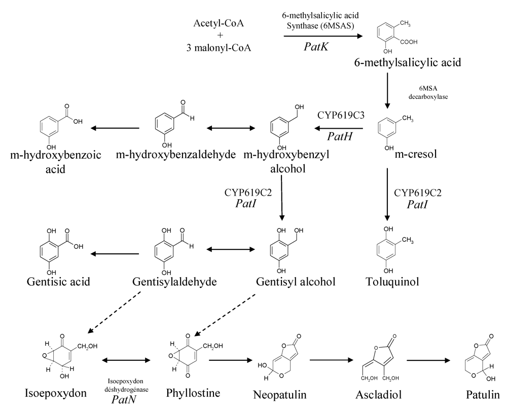 Despite the efforts to reduce the patulin levels in all stages of the apple product processes, the occurrence of this mycotoxin is still high throughout the world. A better understanding of patulin biosynthesis would help to limit patulin contamination during the storage of apples in cold rooms.