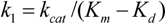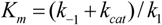and that Michaelis-Menten kinetics are obeyed to generate the product (P), the equations for Km