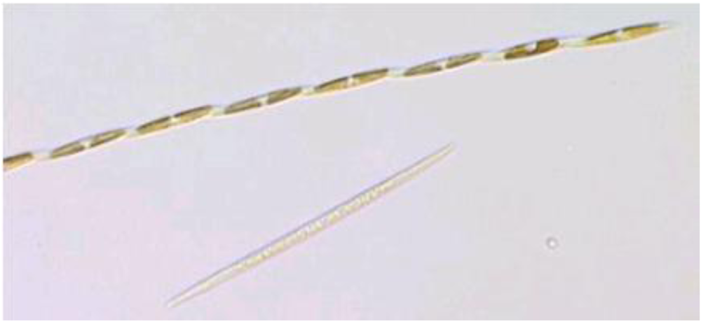Light micrograph of Pseudo-nitzchia multiseries. Reprinted with permission from Dr. S.L. Morton [22].