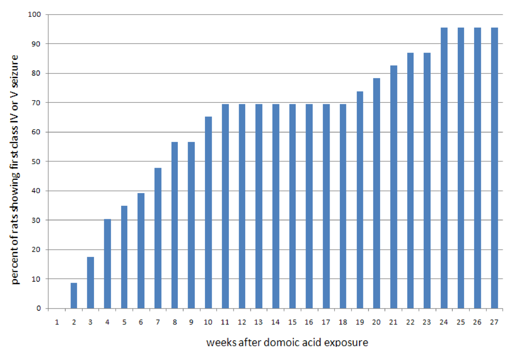 Onset of seizures after a single domoic acid induced status epilepticus.