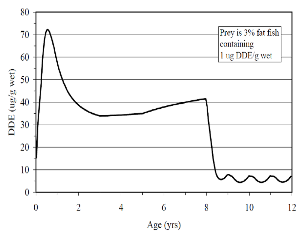 p,p’-DDE toxicokinetics in the California sea lion modeled on consumption of contaminated fish. Reprinted with permission from Elsevier [64].