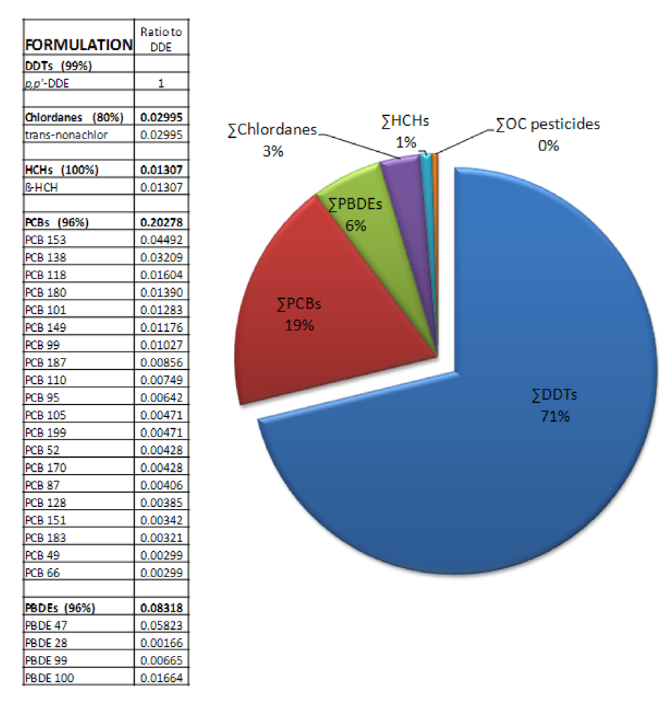 Sea lion contaminant formulation tested in zebrafish embryos [93]. Data on contaminant concentrations from [94].