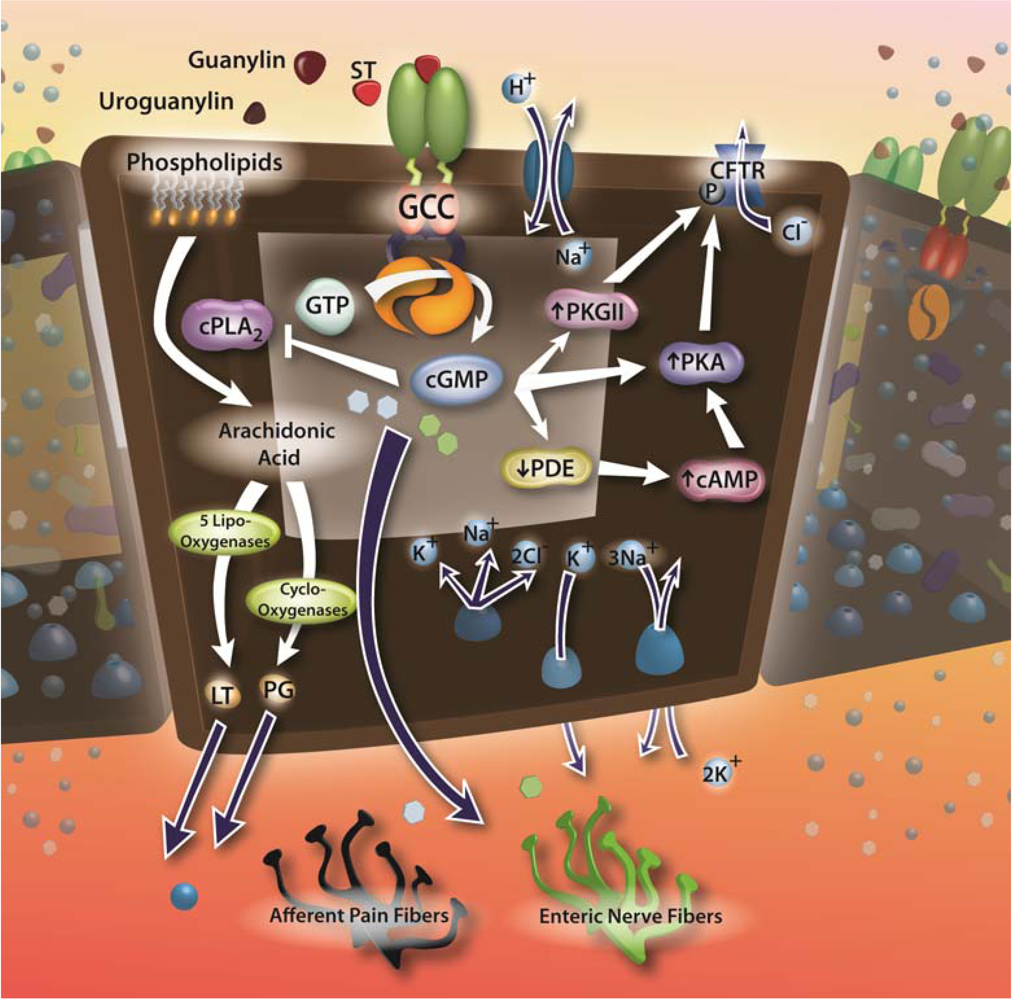 1.3. Guanylyl cyclase C and enterotoxin signaling circuits