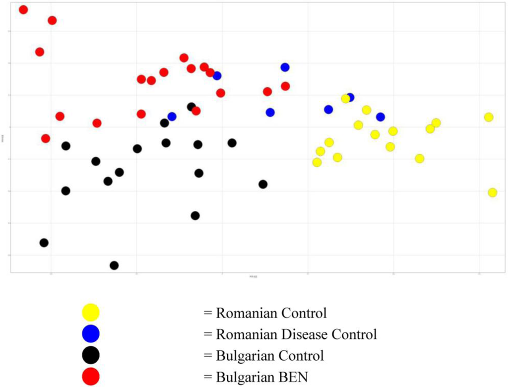 Notably, urines of the three Romanian control subjects from hyperendemic villages and which clustered towards the well separated BEN group (