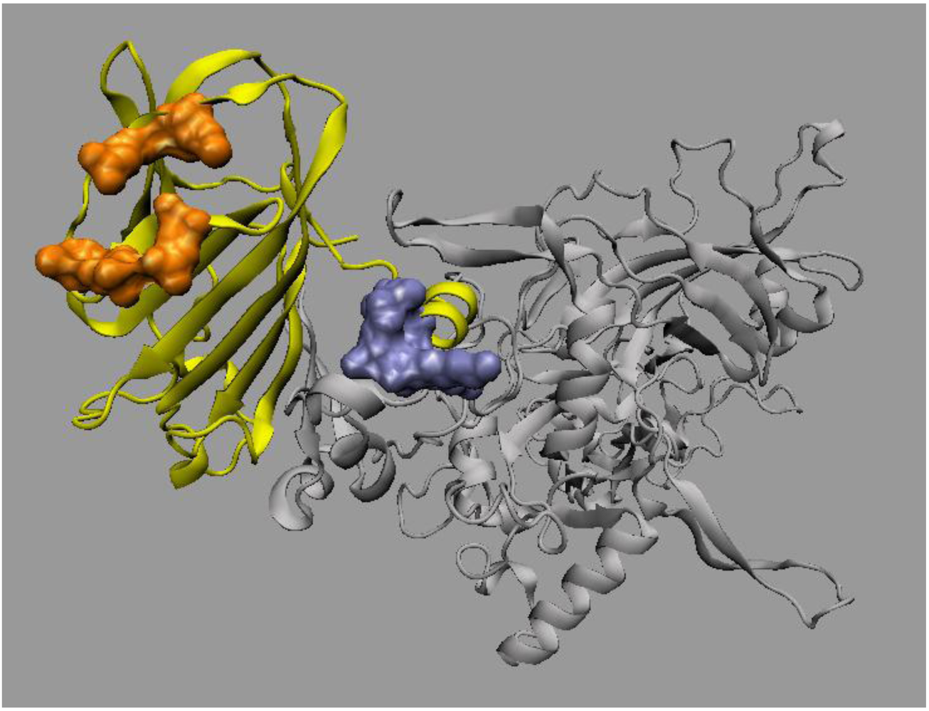 Residues recognized by the the human monoclonal antibody 47F12 mapped onto the solved structure of PA