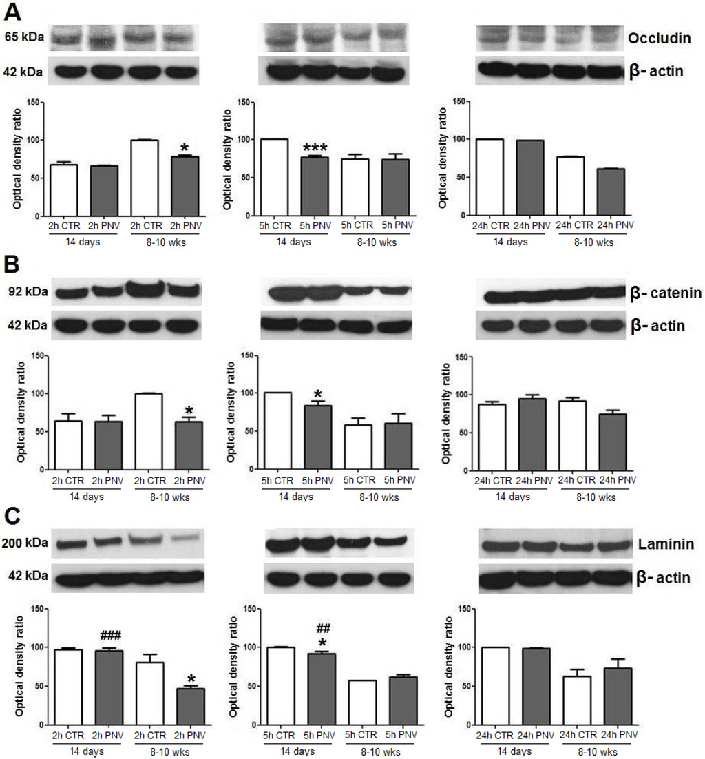 2.1. Blood-Brain Barrier-Associated Proteins: Occludin, β-Catenin, Laminin