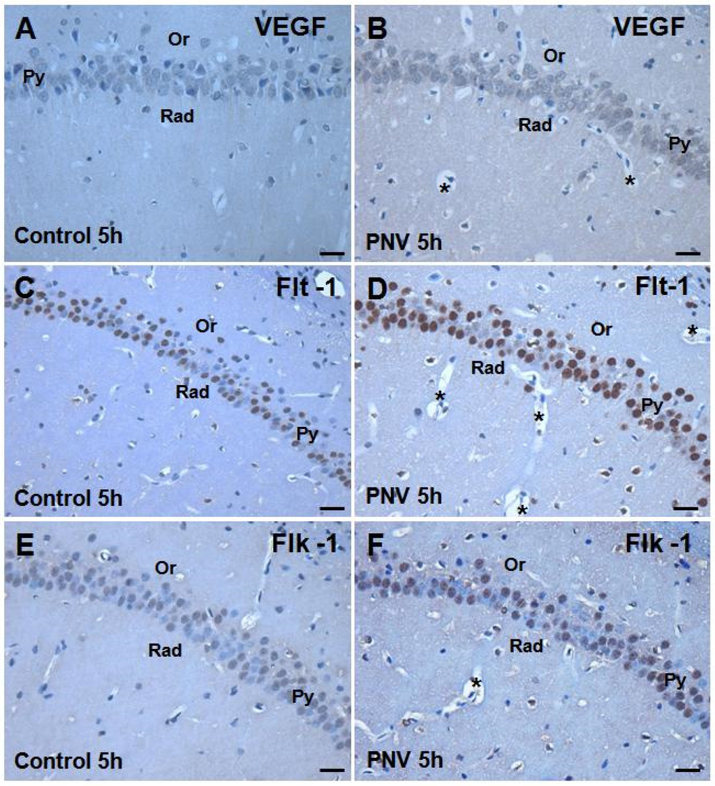 2.2. Immunohistochemistry: PNV Increased VEGF, Flt-1, Flk-1 Immunostaining