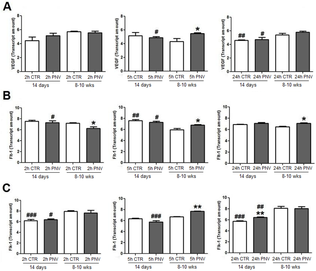 2.3.2. VEGF, Flt-1 and Flk-1 mRNAs (qPCR)