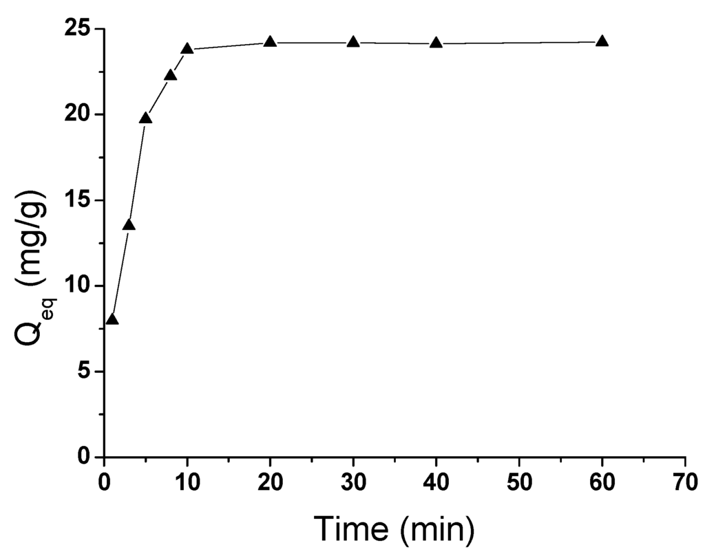 The particle size and structure of the sorbents were characterized by a transmission electron microscope (TEM, JEOL 2100). Magnetic property was analyzed using a vibrating sample magnetometer (VSM, LDJ9600). The XRD characterization was performed using X-ray diffraction (Bruker D8 Focus, Breman, Germany) with Cu Kα radiation at room temperature.