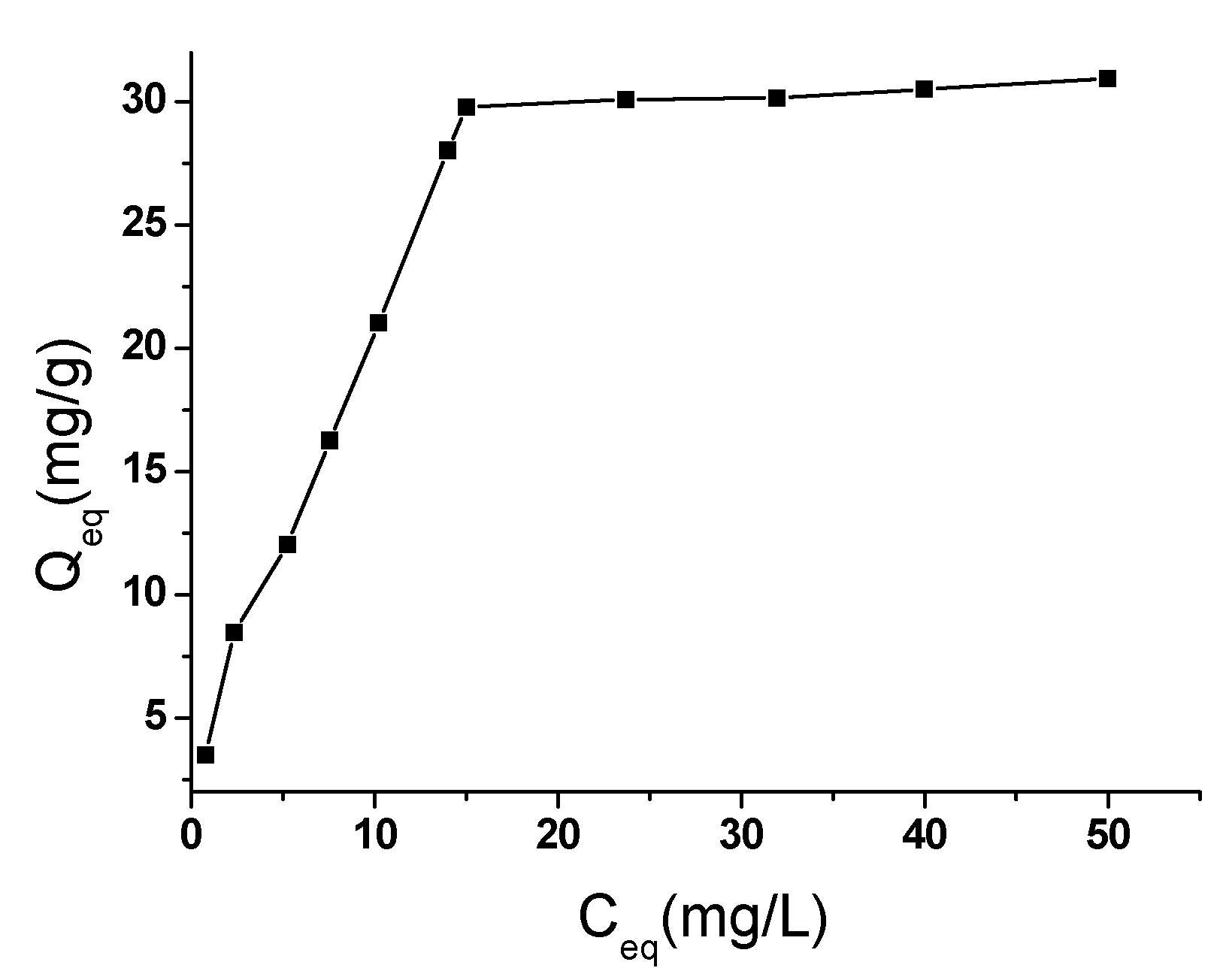 Where Ceq (mg/L) is the equilibrium concentration, Qeq (mg/g) is the amount adsorbed at equilibrium, Qmax (mg/g) is the maximum adsorption capacity and b (Langmuir constant, L/mg) is the energy of adsorption.
