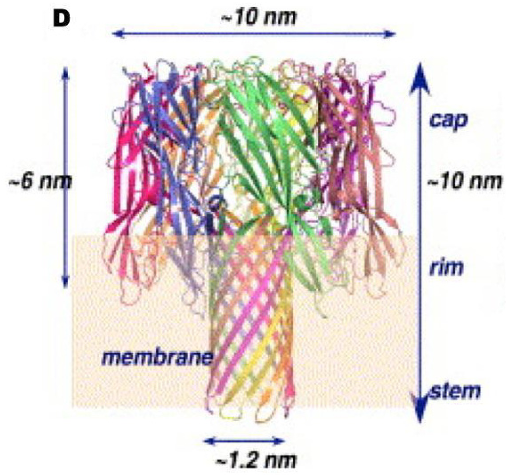 Molecular model of the B. cereus haemolysin II heptameric pore. Molecular modeling was performed using the 3D structure of α-hemolysin from S. aureus [60].