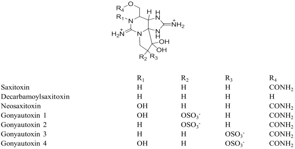 In Japan fugu or puffer fish, is a long established delicacy, in spite of its known potential for toxicity. Tetrodotoxin (TTX) is the naturally occurring toxin that is mainly responsible for the risk to consumers [1,2,3,4,5,6,7,8,9,10,11,12,13]. In fact, over 20 species of puffer fish have been found to harbour the toxin [14]. TTX is both water soluble and heat stable so cooking does not negate its toxicity; rather it increases toxic effect [15]. Consequently, great care must be taken by specially trained chefs to ensure that the hazardous parts of the fish (specifically the liver, ovaries and skin) are excised before serving; nevertheless human intoxications and some fatalities have been linked to the consumption of puffer fish [1,2,3,6,9,11,16,17,18,19].