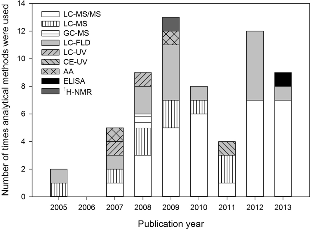 When analytical methods are poorly described, they cannot be reproduced by other scientists and the results of the study cannot be validated by independent replication. For instance, some methods could not be reproduced because it was unclear how the elution programs was performed [,] and for another study, it was even impossible to tell which analytical procedure had been followed [].