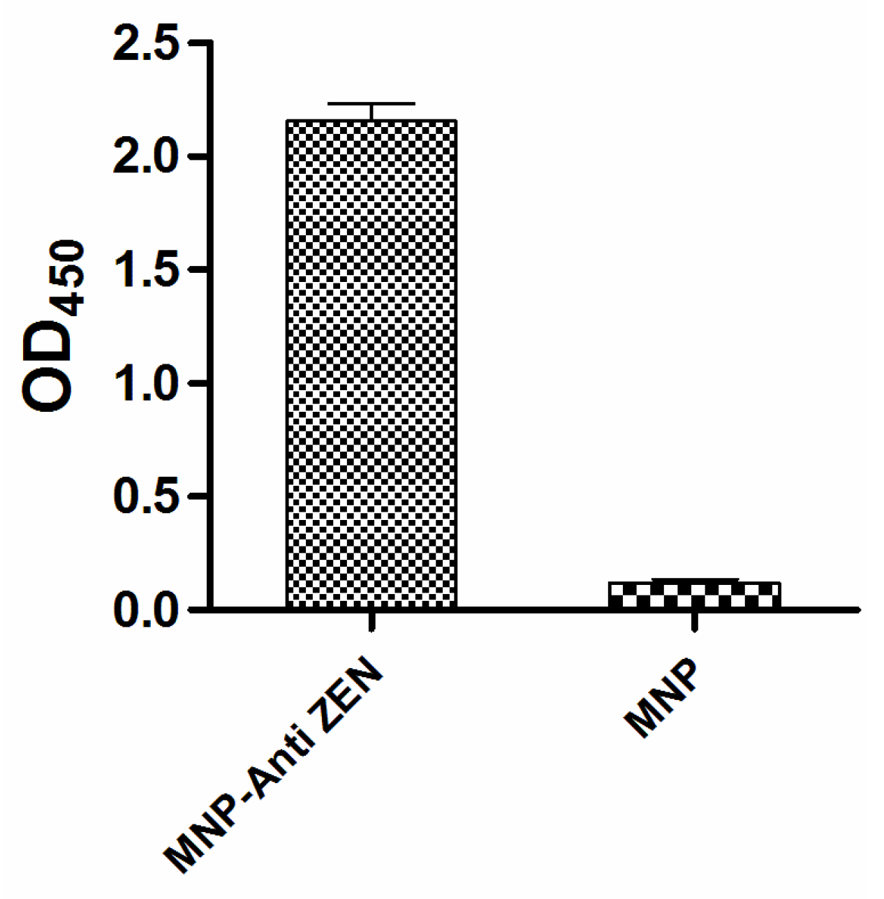 Identification of the immunomagnetic nanoparticles cross-linked with anti-zearalenone monoclonal antibody (MNP-anti-ZEN) by indirect MNP-bsELISA.