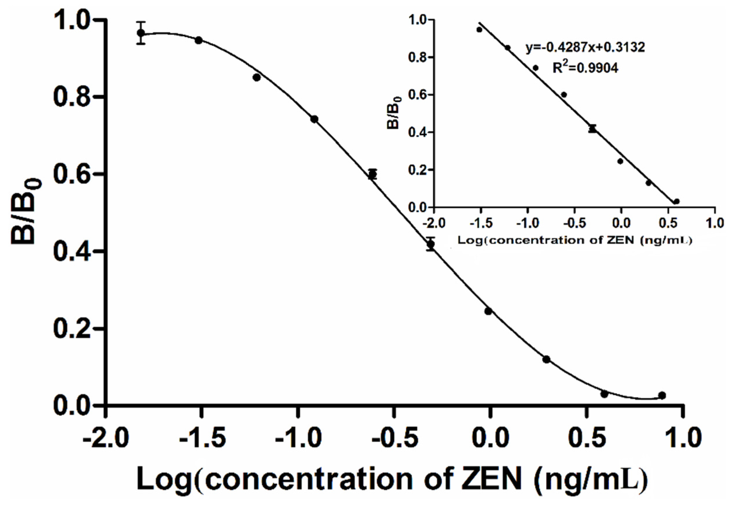 Cross-reactivity (%) = (IC50 of ZEN)/(IC50 of other analytes) × 100%