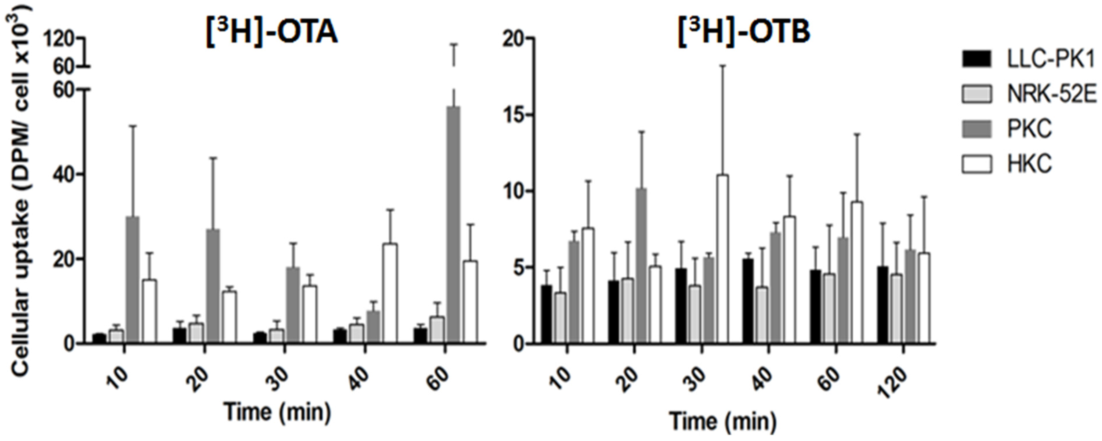 - Heussner, A.H.; Schwöbel, F.; Dietrich, D.R. Cytotoxicity of ochratoxin A and B in vitro: Comparison of male and female rat primary renal cortex and distal cells and LLC-PK1 cells. Toxicol. Sci. 1998, 42, 288. Available online: http://www.toxicology.org/pubs/docs/Tox/1998Tox.pdf (accessed on 20 October 2015). [Google Scholar]