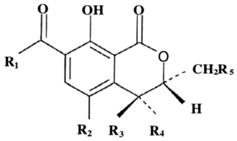 | Ochracin (=mellein) | -- | H at C-7 | H | H | H | H |