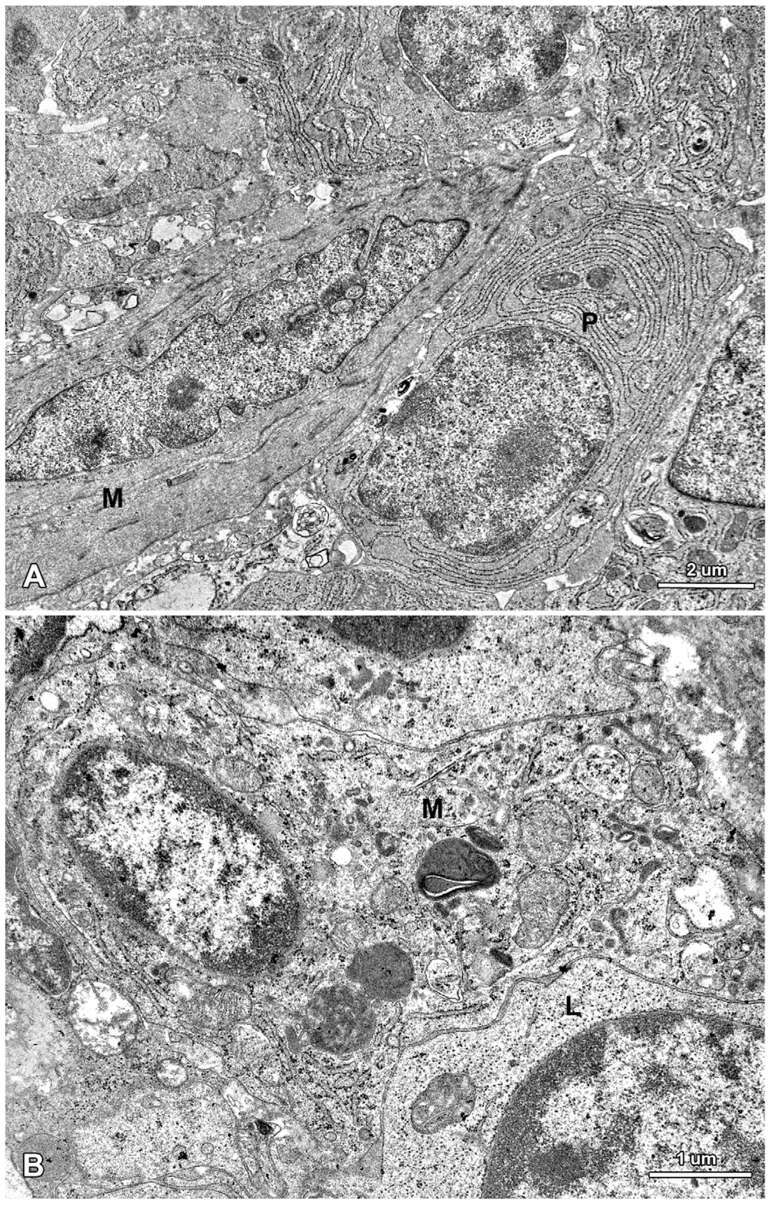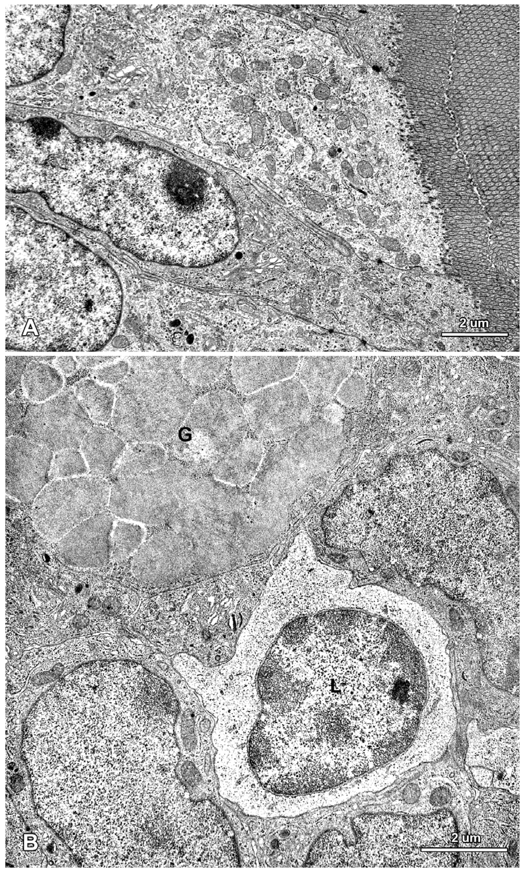 Mac.G. and Mag.G. conceived and designed the study; Ł.Z. and M.T. performed the animal experiment; B.P-G., M.P. and M.T. conducted the histological studies; B.L. and N.Z. performed the ultrastructural studies; Mac.G., Mag.G., M.T., B.P-G., and B.L analyzed and interpreted the data; B.P-G., M.T. and B.L wrote the paper; Mac.G. and Mag.G discussed the manuscript.