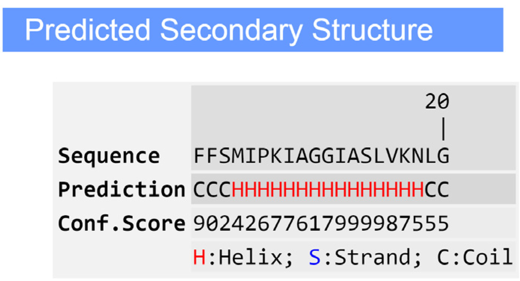 Predicted secondary structure of Phylloseptin-PBa using the on-line protein secondary structure prediction tool, I-TASSER.