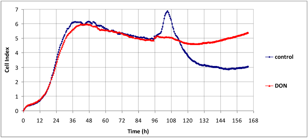 2.2. The Effect of DON on Actively Proliferating Caco-2 Cells