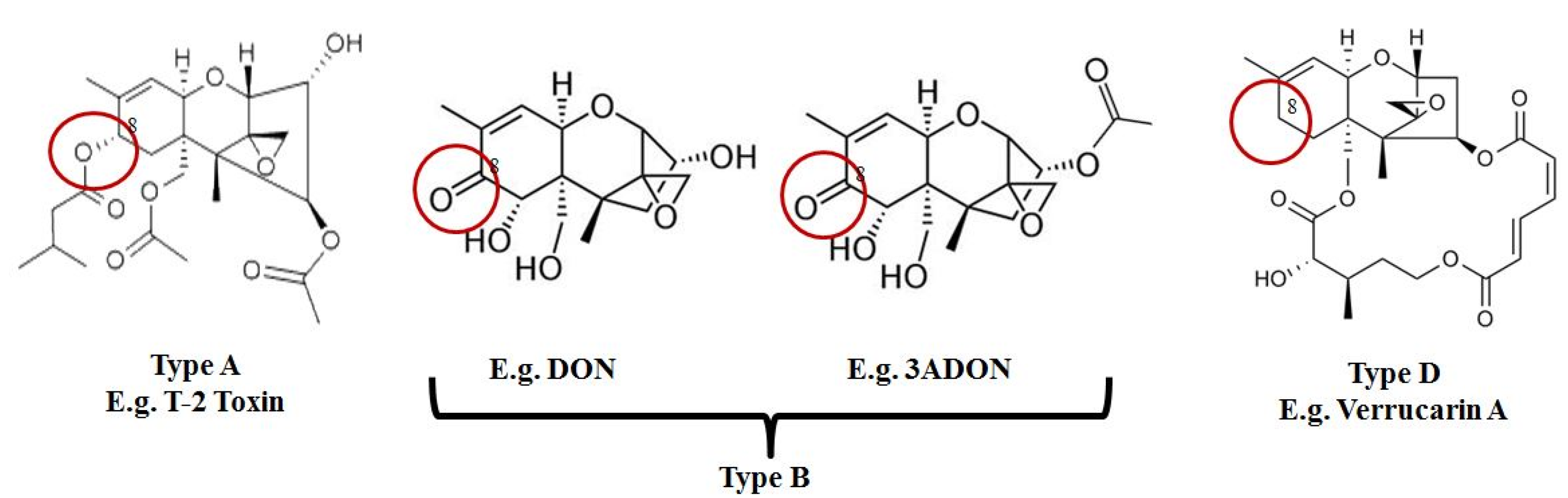 - Fruhmann, P.; Weigl-Pollack, T.; Mikula, H.; Wiesenberger, G.; Adam, G.; Varga, E.; Berthiller, F.; Krska, R.; Hametner, C.; Frohlich, J. Methylthiodeoxynivalenol (MTD): Insight into the Chemistry, Structure and Toxicity of Thia-Michael Adducts of Trichothecenes. Org. Biomol. Chem. 2014, 12, 5144–5150. [Google Scholar] [CrossRef] [PubMed]