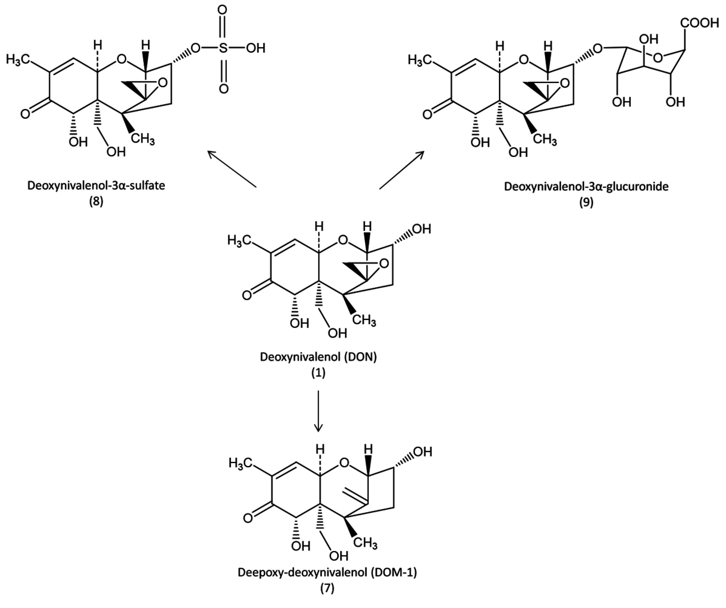 24]. Although DON-sulfonates are also formed in plants, and these compounds are known as “masked mycotoxins” because they can form DON