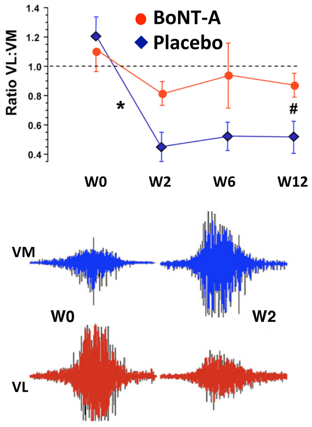 - Singer, B.J.; Silbert, P.L.; Dunne, J.W.; Song, S.; Singer, K.P. Treatment of refractory anterior knee pain using botulinum toxin type A (Dysport) injection to the distal vastus lateralis muscle: A randomised placebo controlled crossover trial. Br. J. Sports Med. 2011, 45, 640–645. [Google Scholar] [CrossRef] [PubMed]