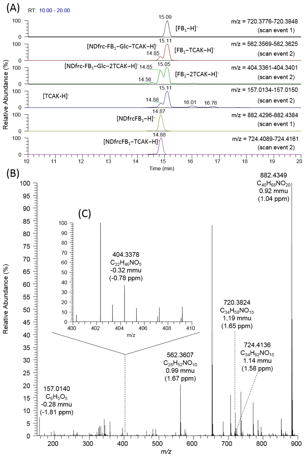 Chicago/Turabian StyleMatsuo, Yosuke, Kentaro Takahara, Yuki Sago, Masayo Kushiro, Hitoshi Nagashima, and Hiroyuki Nakagawa. 2015. "Detection of N-(1-deoxy-d-fructos-1-yl) Fumonisins B2 and B3 in Corn by High-Resolution LC-Orbitrap MS" Toxins 7, no. 9: 3700-3714. https://doi.org/10.3390/toxins7093700