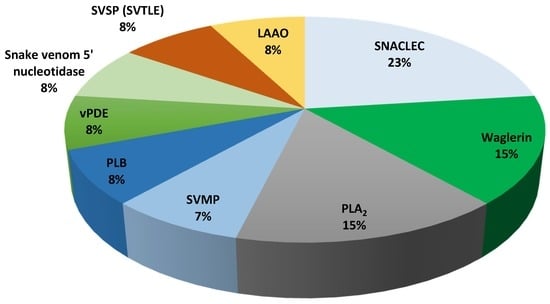2.2. Venom Composition of T. wagleri and C. purpureomaculatus