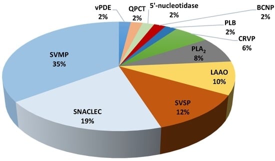- Takeda, S.; Takeya, H.; Iwanaga, S. Snake venom metalloproteinases: Structure, function and relevance to the mammalian ADAM/ADAMTS family proteins. BBA Proteins Proteom. 2012, 1824, 164–176. [Google Scholar] [CrossRef] [PubMed]