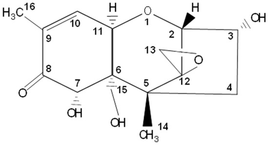 | DON | Fungi | (3α,7α)-3,7,15-trihydroxy-12,13-epoxy-trichothec-9-en-8-one |