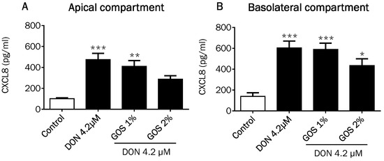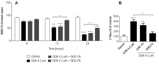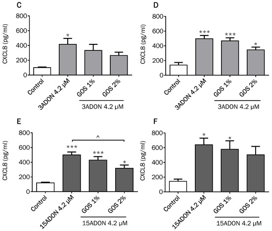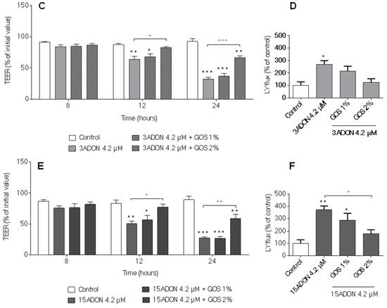 2.5. GOS Prevent and Suppress Barrier Disruption and Pro-Inflammatory Effects Exerted by DON and Its Acetylated Derivatives