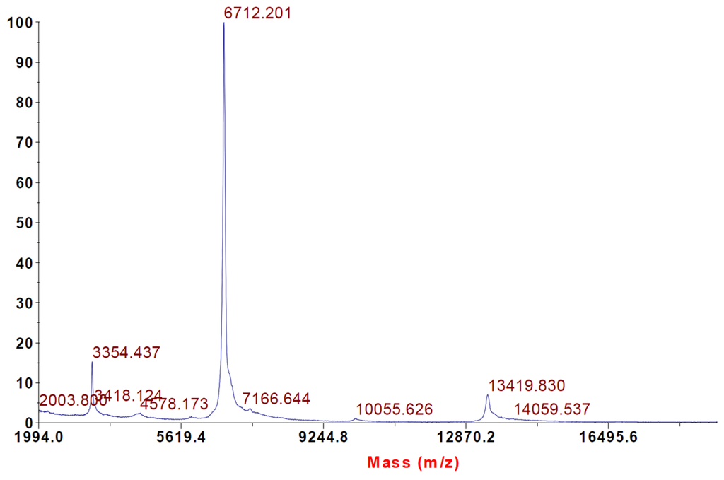 4.3.1. Intact Protein Analysis Using Matrix Associated Laser Desorption Time of Flight (MALDI-TOF) Mass Spectrometry
